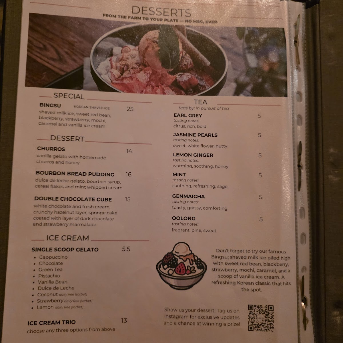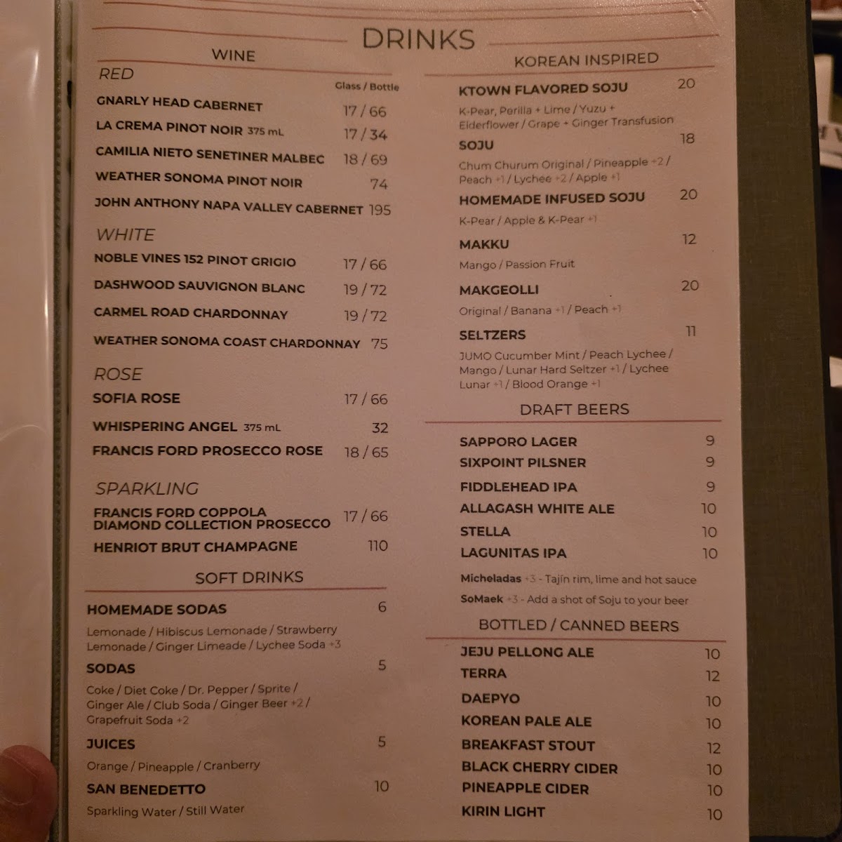 This menu fits the approachable yet energetic vibe of the restaurant, where the focus is on a relaxed yet engaging dining experience. The balance between comforting dishes and modern touches encourages visitors to savor each meal without rush, appreciating the variety of flavors and textures that Korean cuisine has to offer.